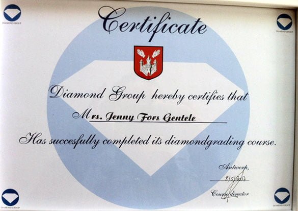 2007 så gick jag en kurs nere i antwerpen där jag lärde mig om hur diamanter graderas när det gäller färg, renhet, slipning och vikt (diamanternas fyra c:n) vilket är de fyra grundpelarna som bestämmer stenens kvalité och pris.