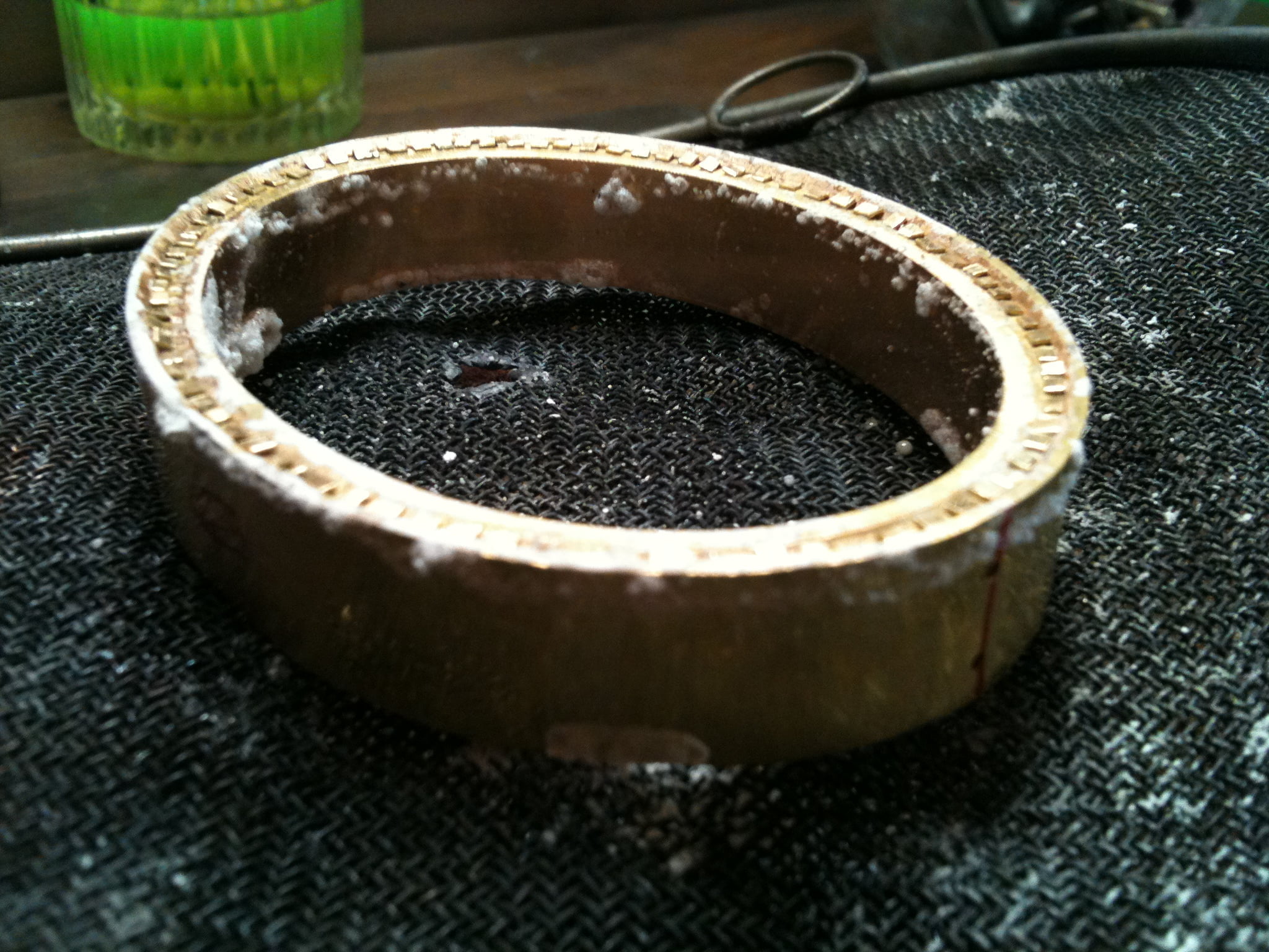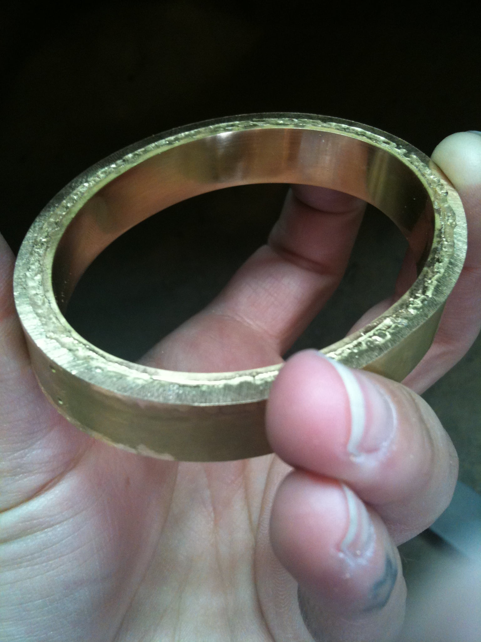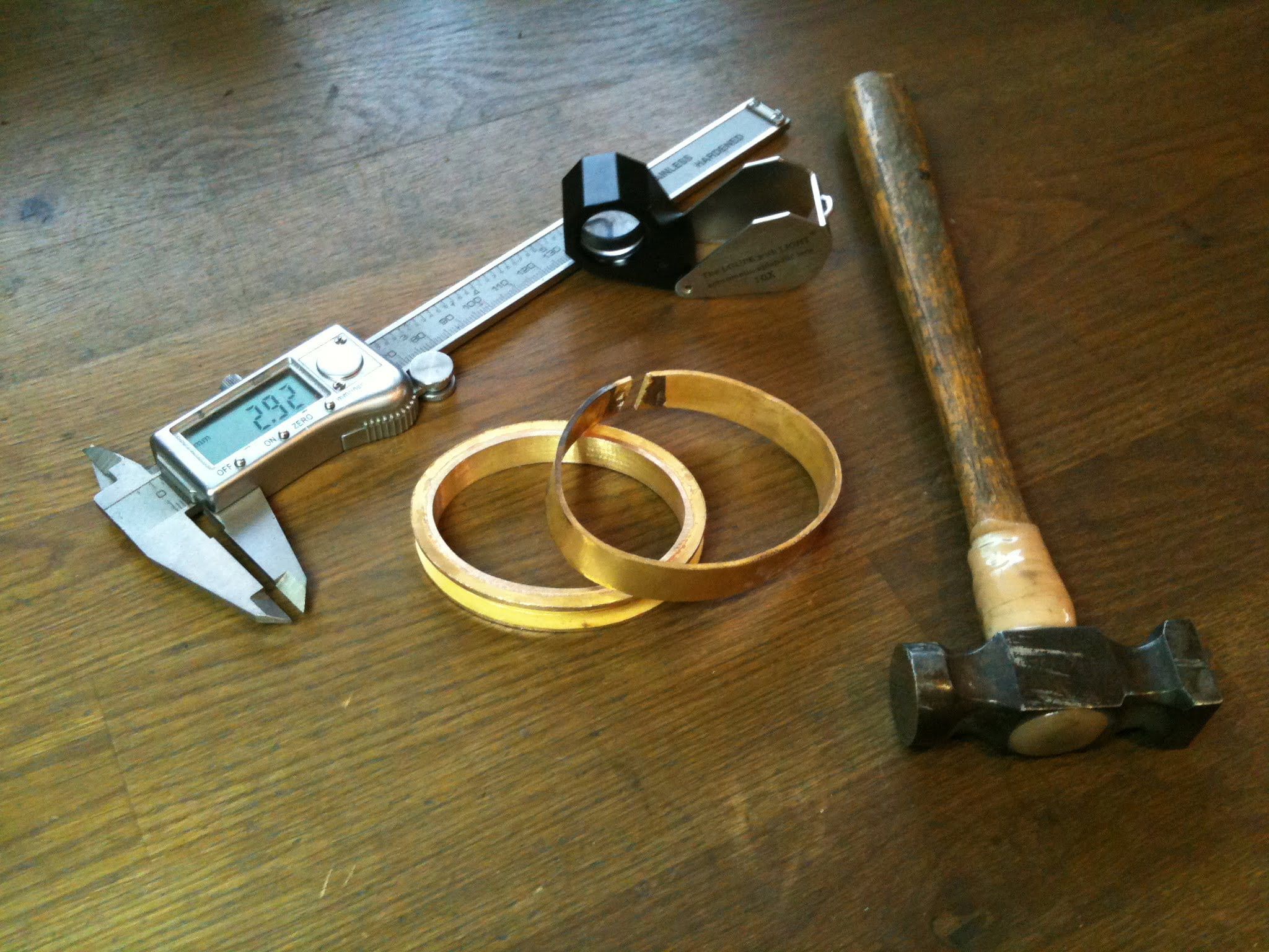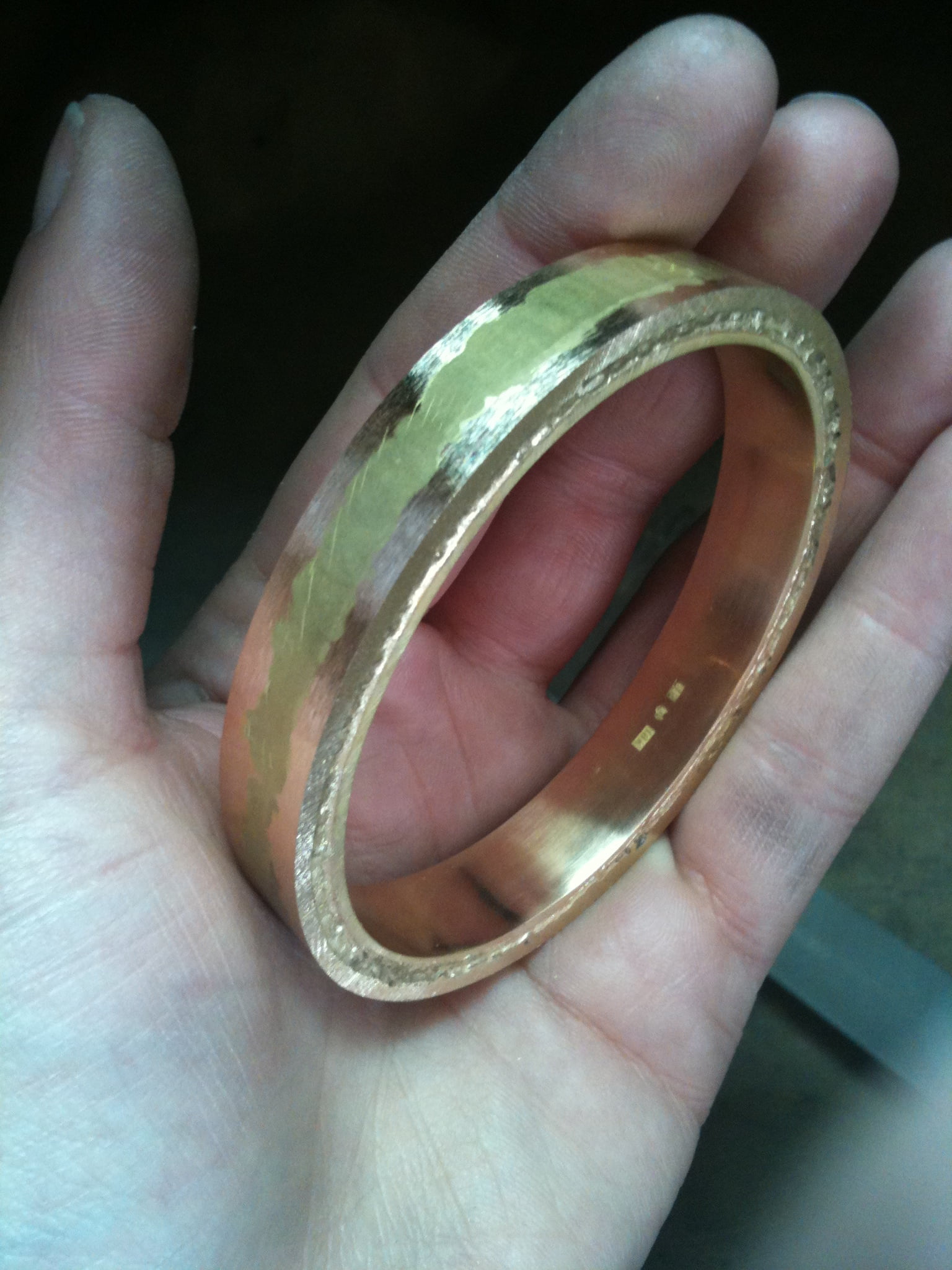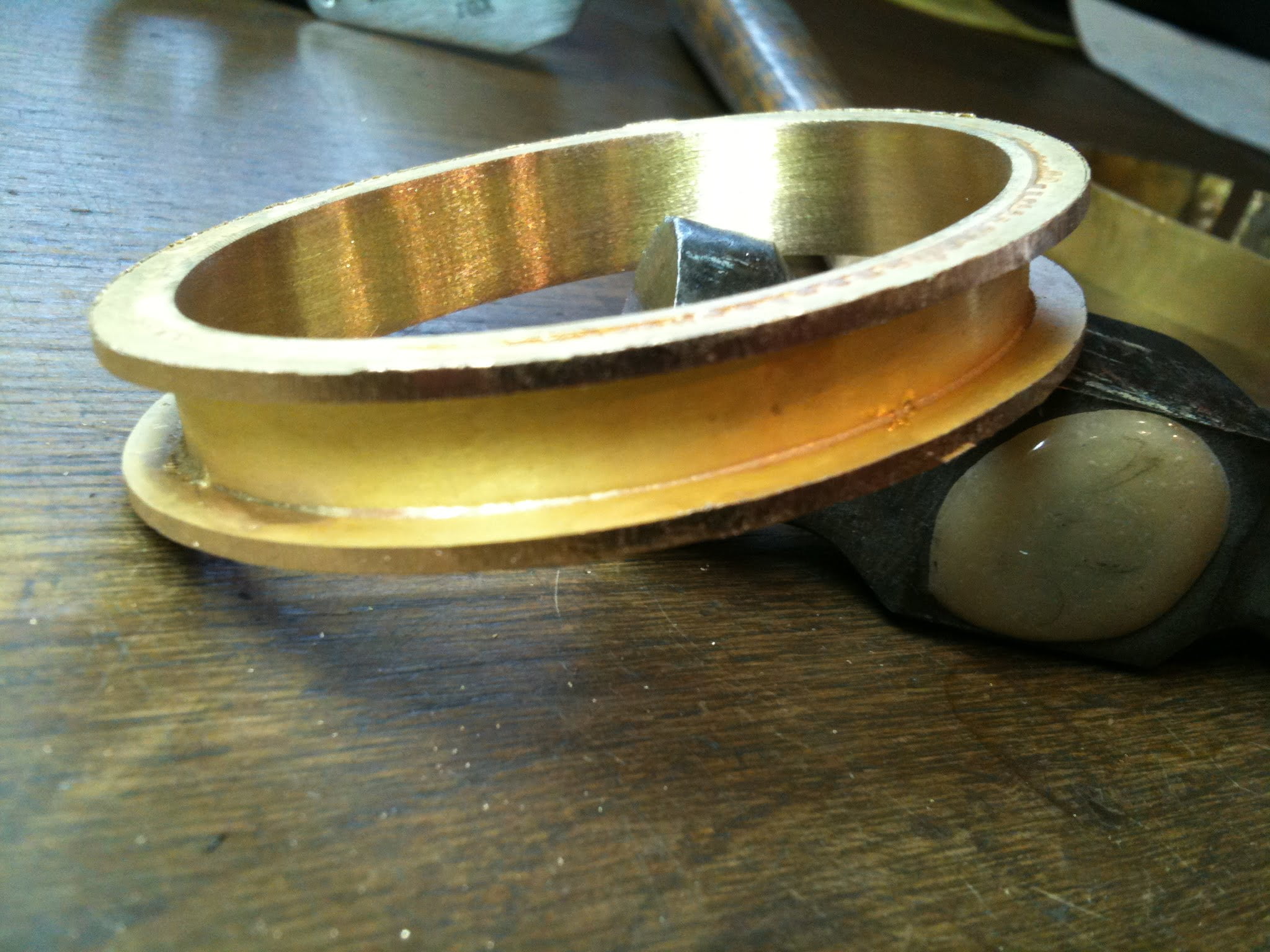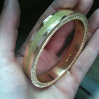 Jag har börjat göra en armring i rödguld som jag kommer skicka in till en granskningsnämnd då detta nämligen är en del i det gesällprov som jag håller på att göra.