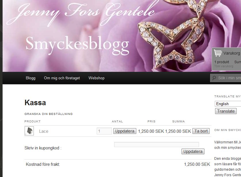 Gå in i min webshop och titta runt, det ni vill ha lägger ni i varukorgen med ett par enkla klick. När ni är färdiga och går till kassan så är det dags att ta fram presentkortet.