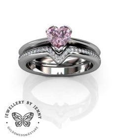 Kombination av enstensring med hjärtslipad ädelsten samt alliansring i svängd modell med briljantslipade diamanter.Dessa diamantringar passar utmärkt som vigselring och förlovningsring och går att beställa i olika material så som vitguld, rödguld, roséguld samt platina.