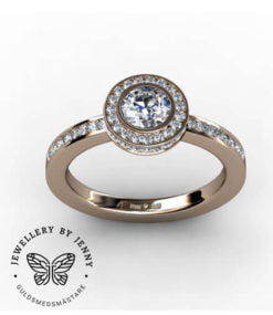 Vi handsmider dessa diamantringar i 18 k rödguld, vitguld, roséguld samt platina.