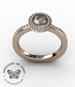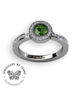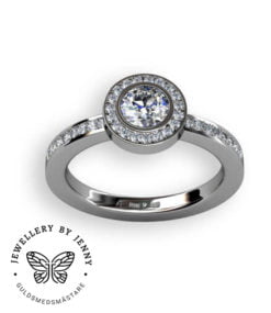 Lämplig storlek på mittstenen är från ca 0.30 ct och uppåt, bilderna visar step by step med en briljantslipad diamant som väger 0.50 ct. Vi kan även göra kombinationer med en färgsten som centersten.
