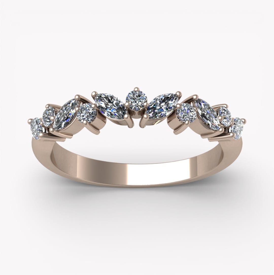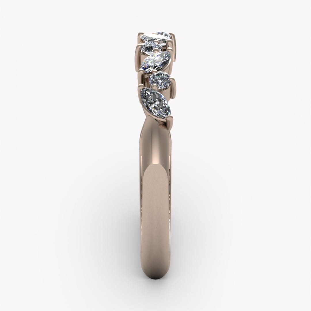Elegant alliansring med briljanslipade och marquiseslipade diamanter