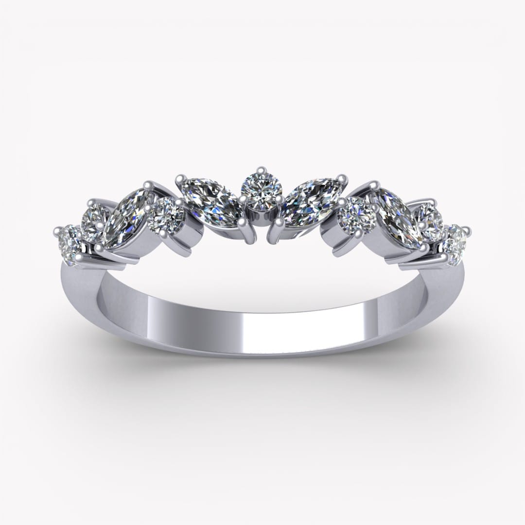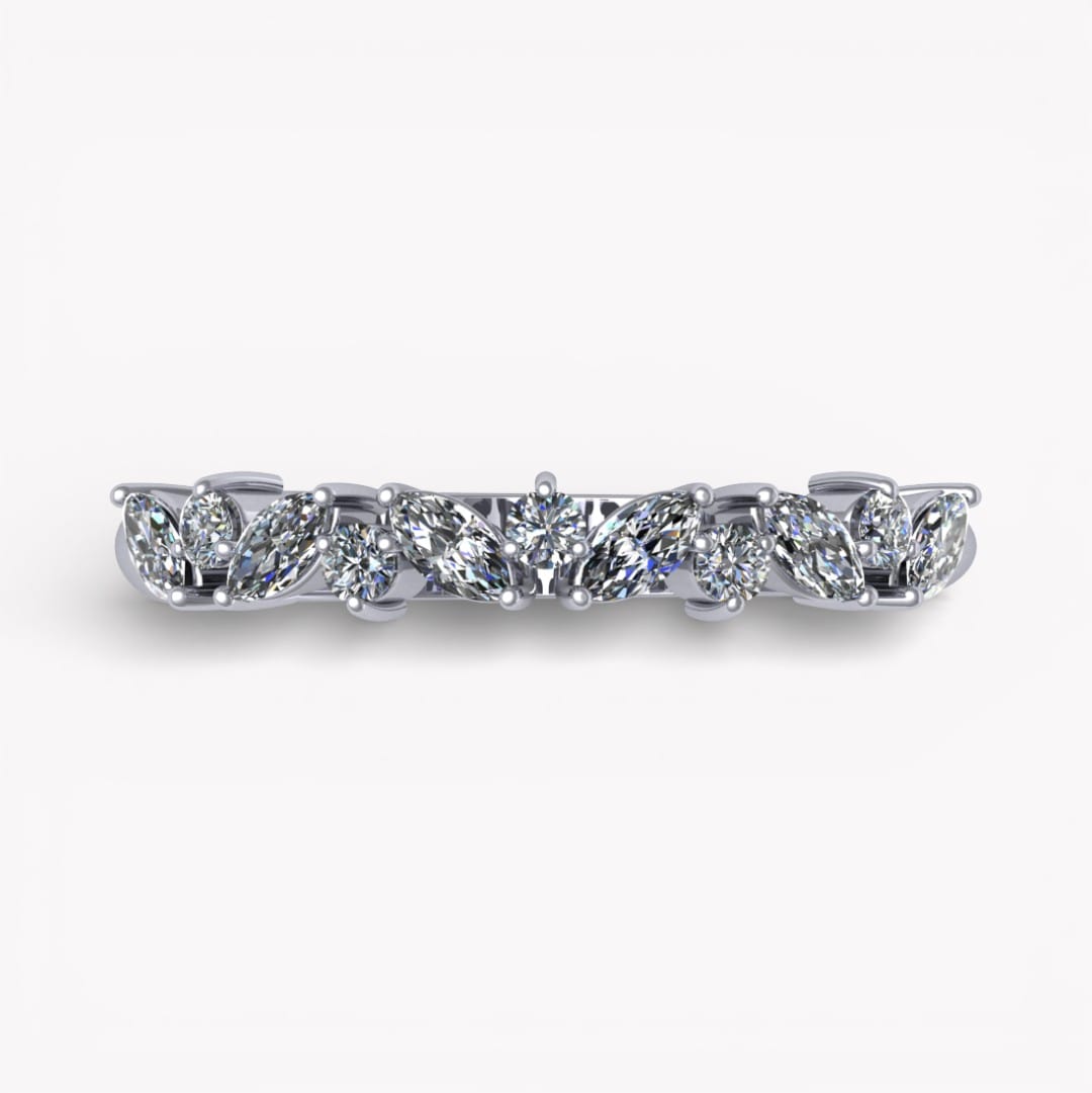 Denna exklusiva ring är skapad för att förena tidlös elegans med modern finess. Designen pryds av en harmonisk kombination av marquiseslipade och briljantslipade diamanter som tillsammans skapar ett levande och sofistikerat uttryck. De noggrant infattade stenarna ger ringen ett vackert ljusspel och en lyxig känsla från alla vinklar.