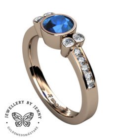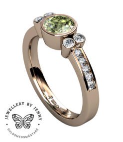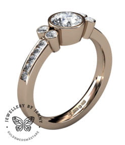 Denna har en mittsten och på vardera sida är två mindre briljantslipade diamanter. Välj mellan att endast ha diamanter eller en färgsten som mittsten.