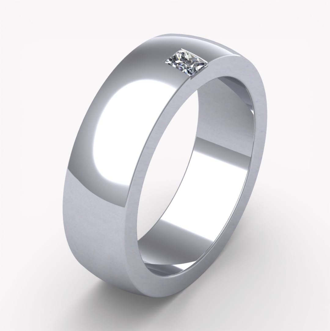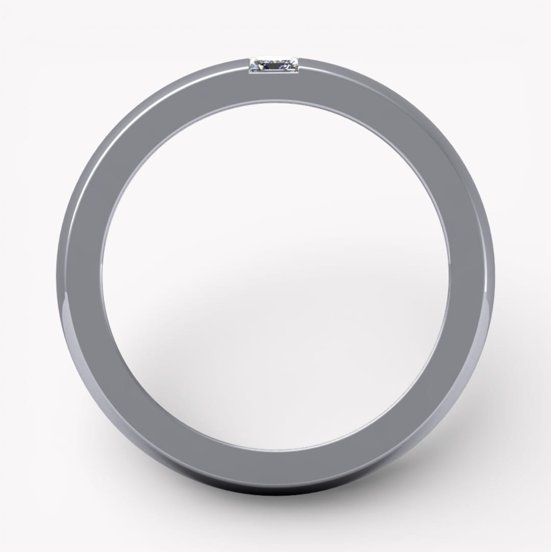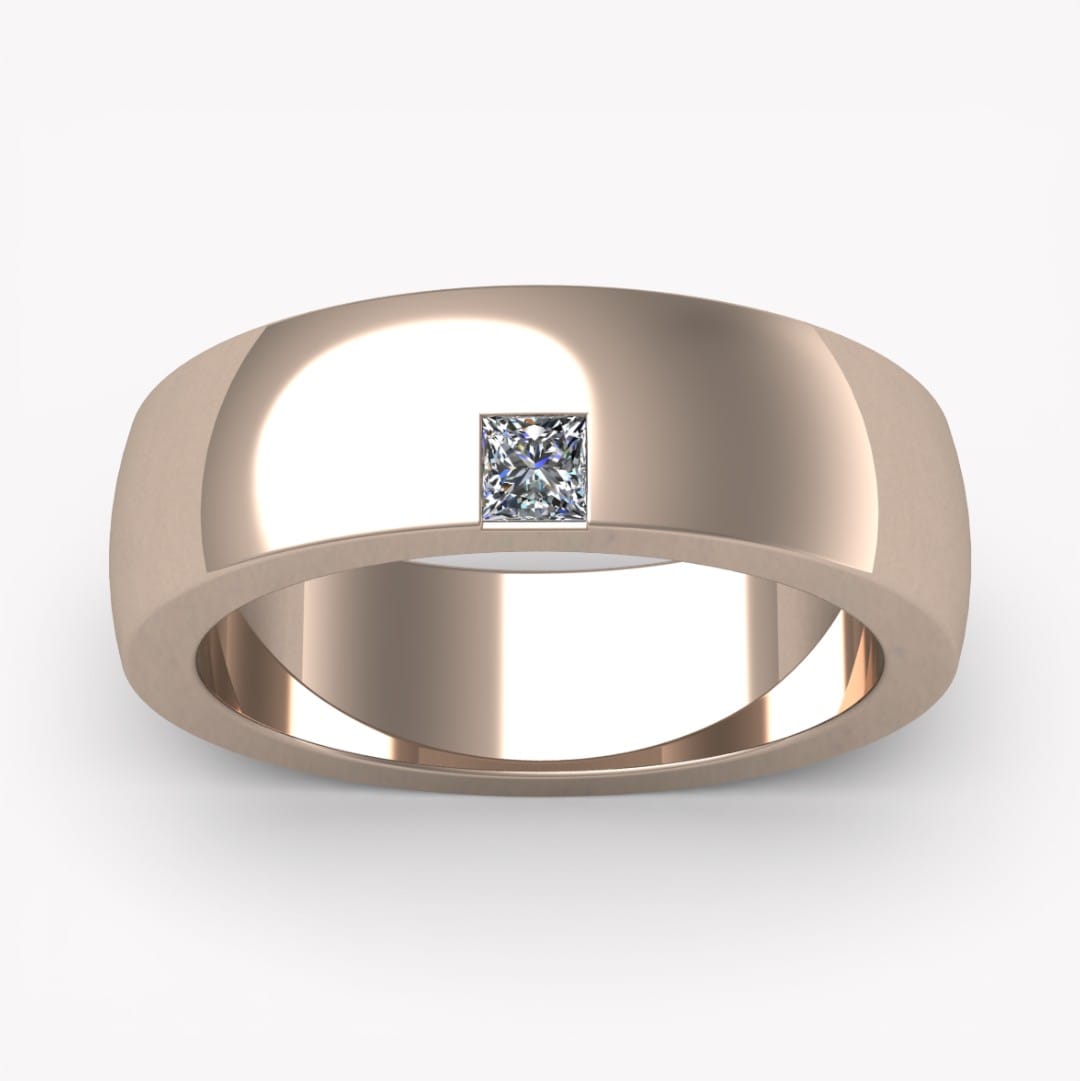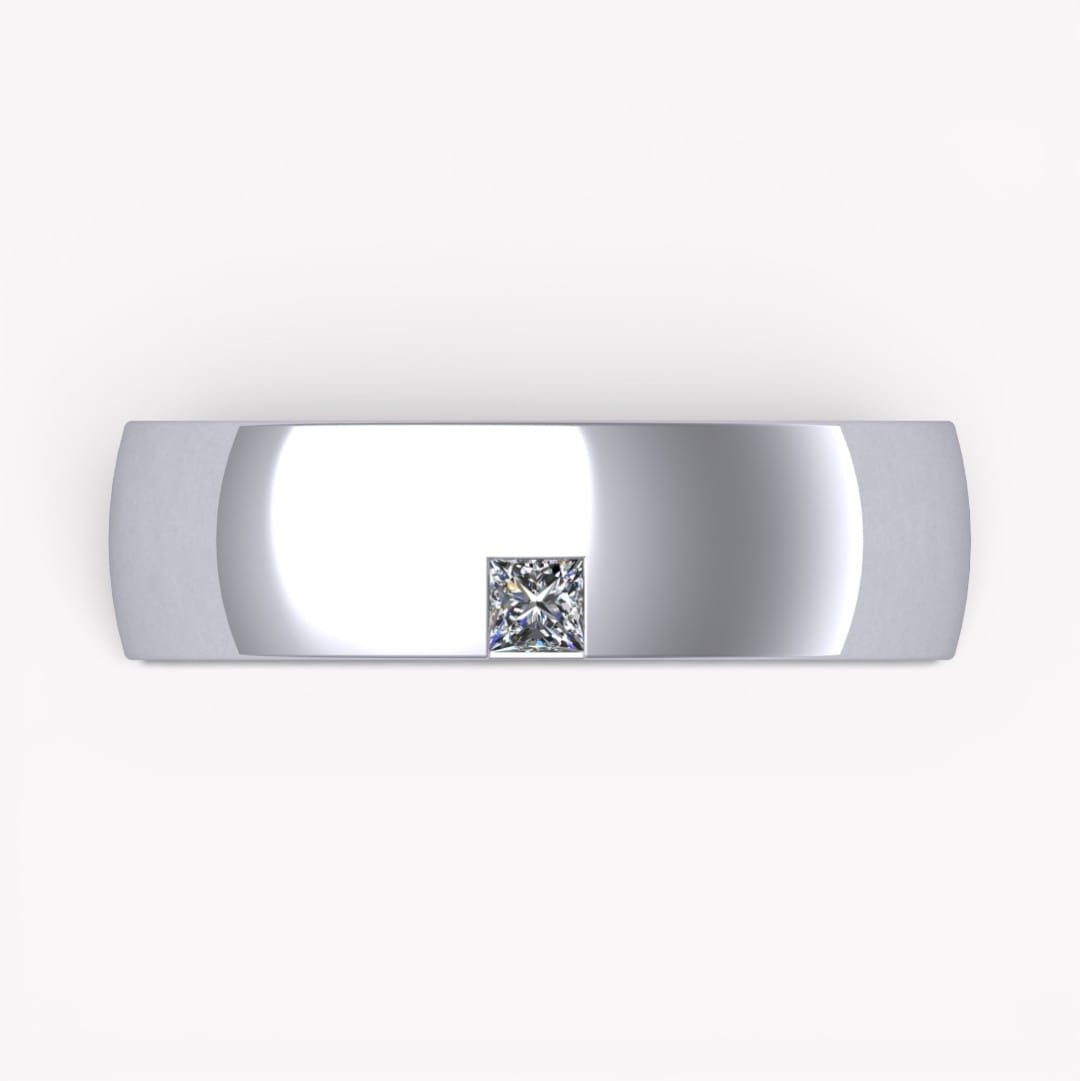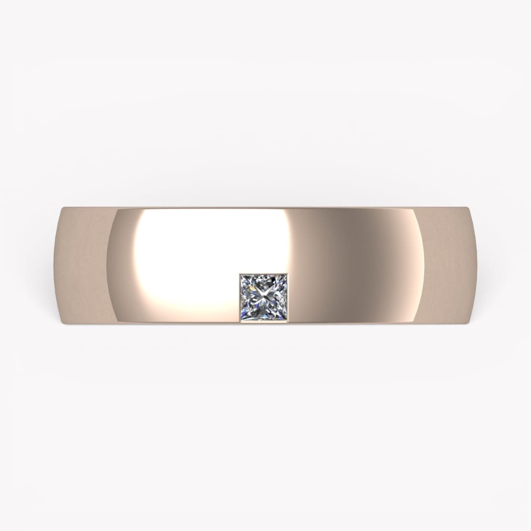På dessa bilder har ringen en bredd av 6,0 mm och en höjd av 2,3 mm, på kanten sitter en prinsesslipad diamant som väger 0.10 ct (kvalité tw,vs) infattad.