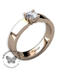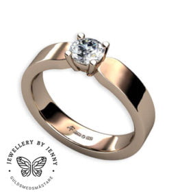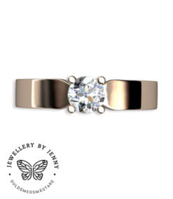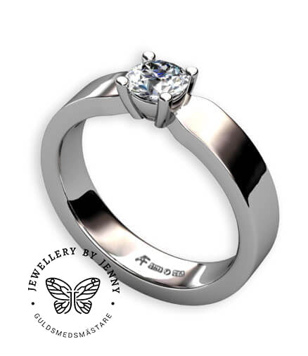Enstensringen Sophie har en flack handsmidd ringskena, på bilderna med en bredd av 4,0 mm och en höjd av 2,0 mm.
