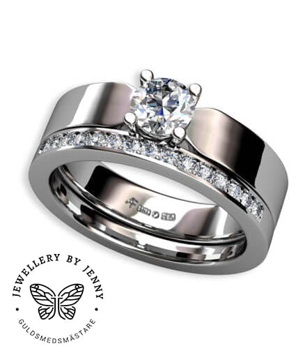 Denna enstensring är mycket snygg att kombinera med en alliansring med fadeninfattade briljantslipade diamanter vilket bilderna visar exempel på.