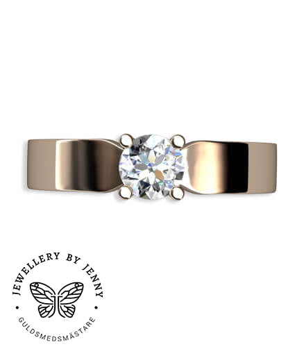 Bilderna visar ringen med en briljantslipad diamant som väger 0.40 ct (kvalité tw,vs) men går även att få med andra storlekar på diamant eller annan ädelsten.