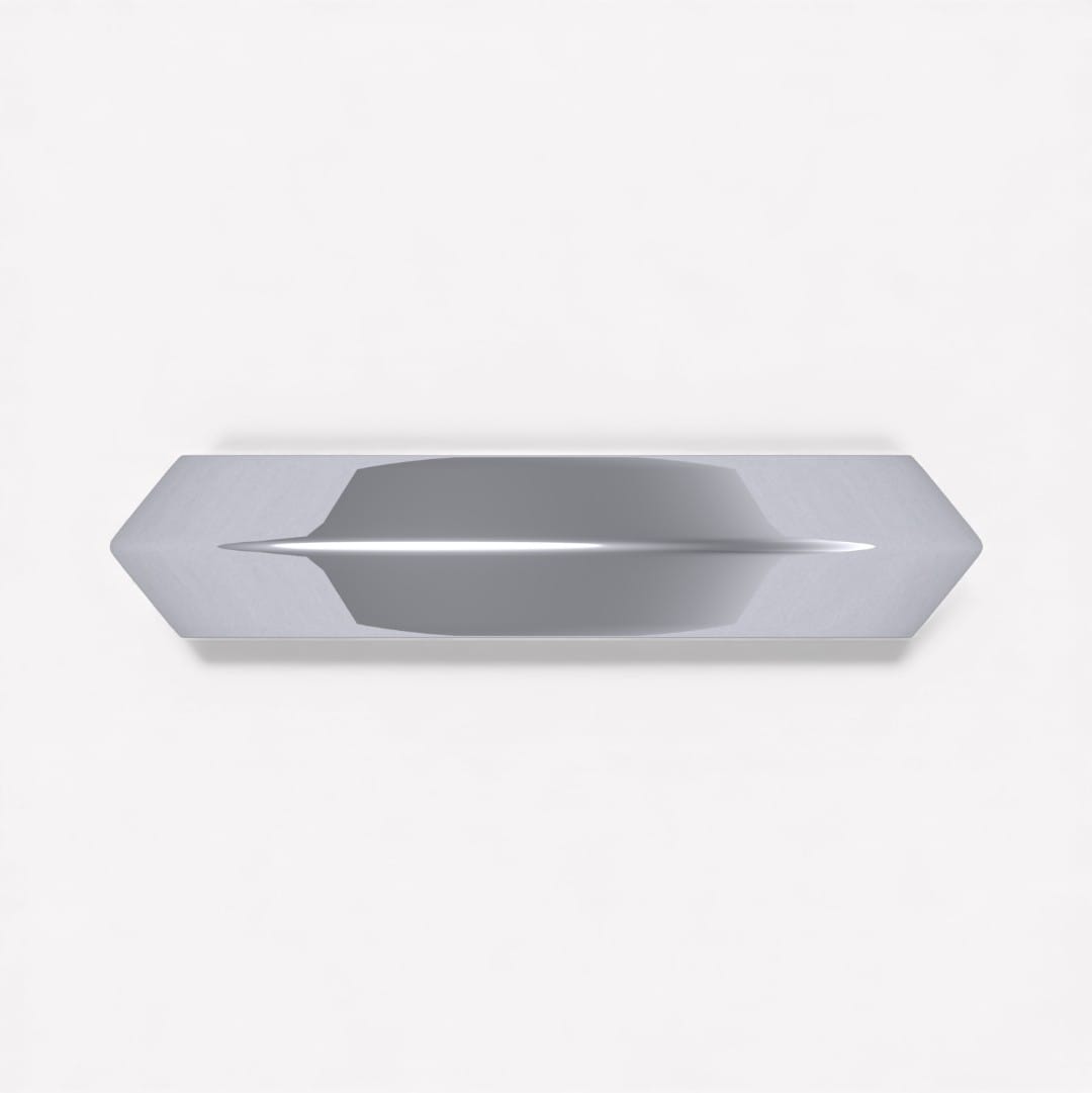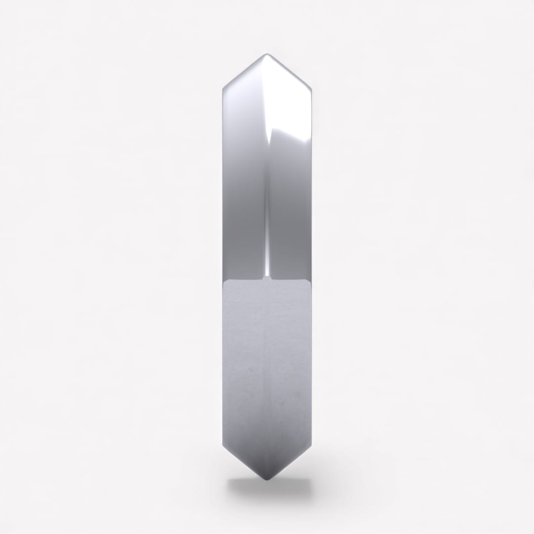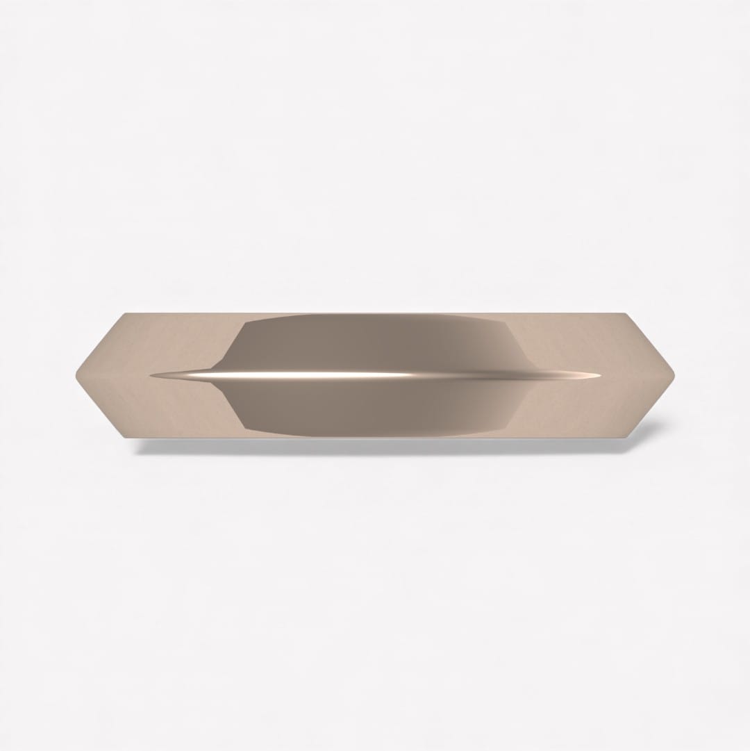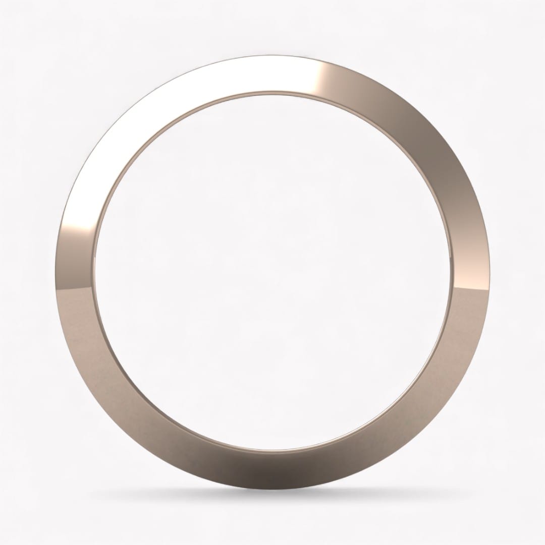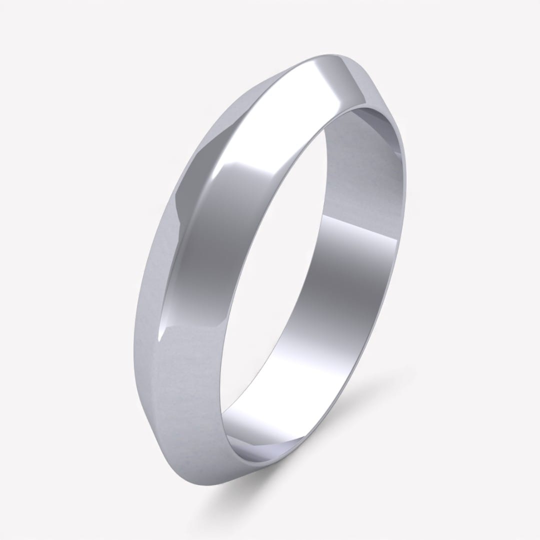 Ringen som har en trekantig profil med spetsen utåt går att beställa i 18 k vitguld, rödguld, roséguld samt platina i önskad bredd samt höjd.