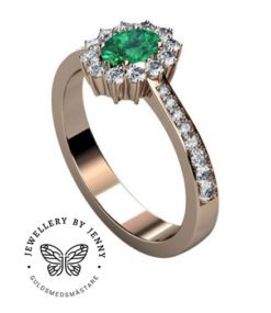 Briljantring i halomodell eller carmoséring som det även kallas i 18 k rödguld.
