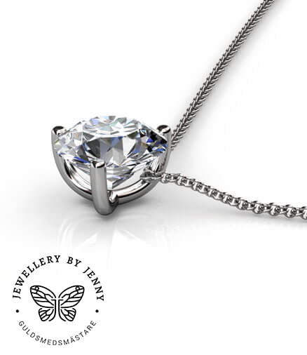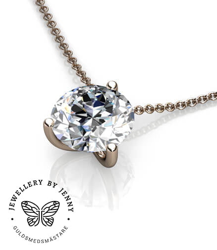 Hängsmycke som går att beställa i 18 k vitguld, rödguld, roséguld samt platina med olika storlekar på den briljantslipade diamanten.