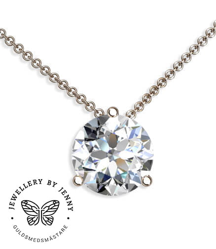 Detta hängsmycke fungerar både till vardag och festligare tillfällen och blir ofta snabbt en favorit. De tre diskreta klorna samt att kedjan löper genom fattningen gör att det som ska var i blickfånget är det, nämligen diamanten!