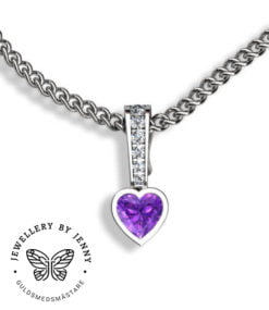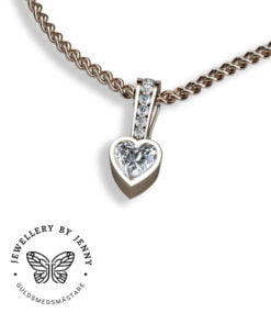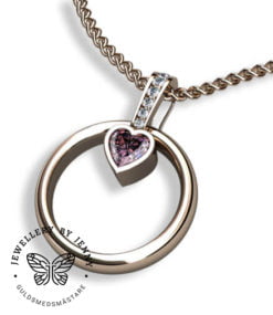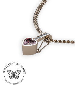 Dessa bilder visar hängsmycket i olika utföranden bland annat med en hjärtslipad rosa turmalin och briljantslipade diamanter.